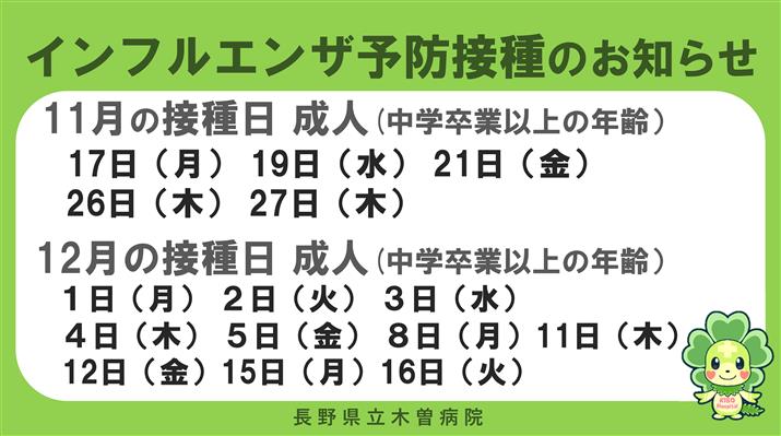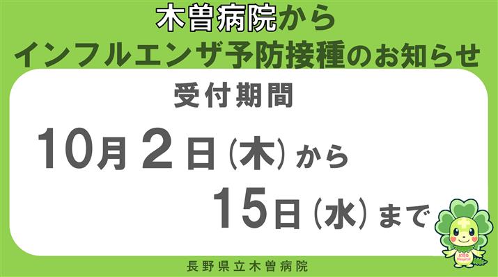 長野県立木曽病院から、インフルエンザ予防接種についてお知らせします。