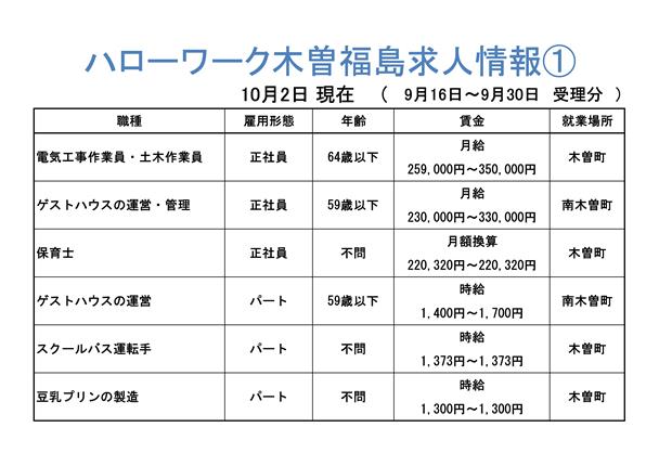 ハローワーク木曽福島からの求人情報をお知らせします。