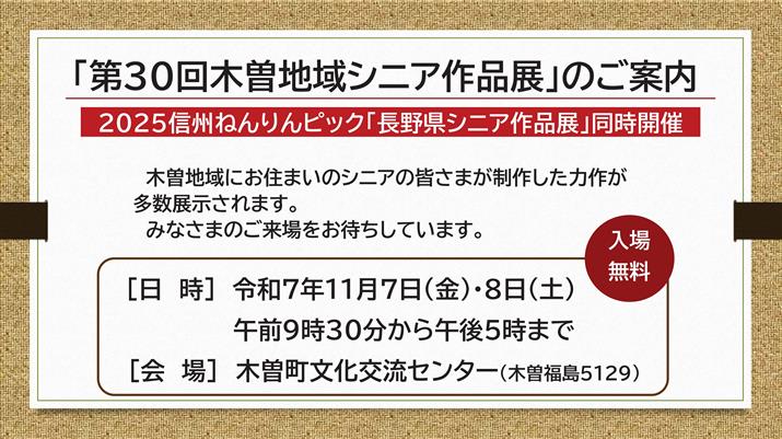 第30回木曽地域シニア作品展開催のお知らせ