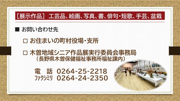 長野県長寿社会開発センター木曽支部より、シニア作品展開催のお知らせです。