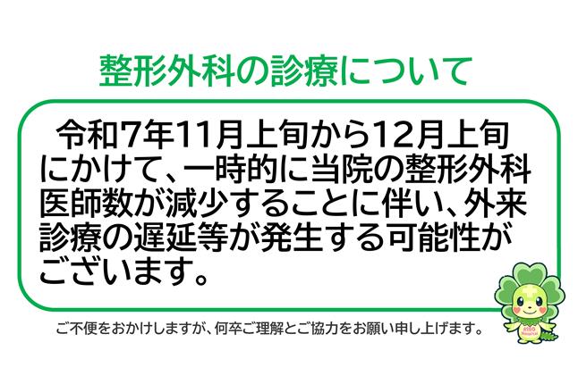 令和7年11月上旬から12月上旬にかけ、外来診察の遅延等が発生する可能性があります。