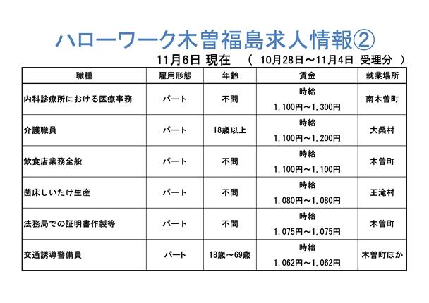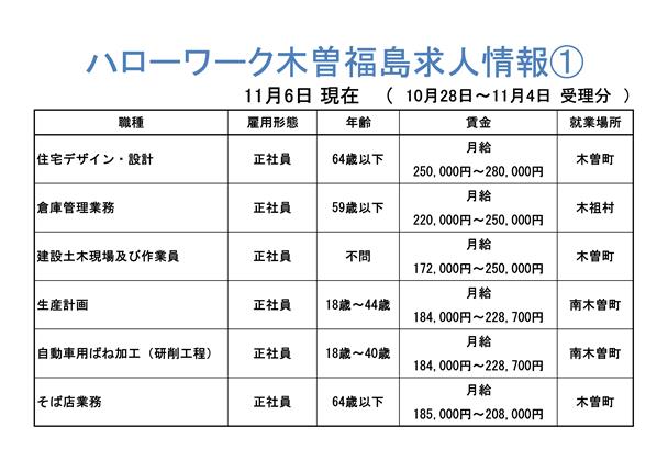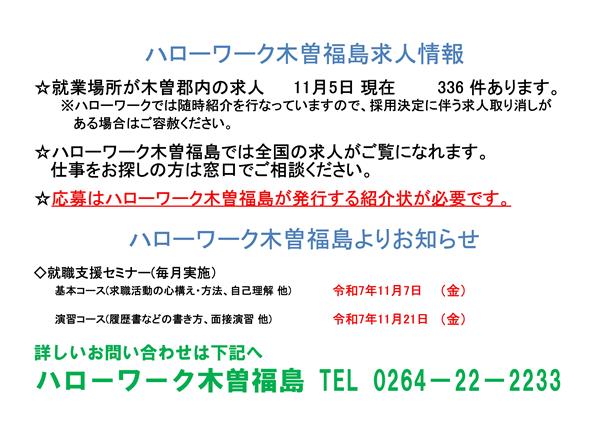 ハローワーク木曽福島からの求人情報をお知らせします。