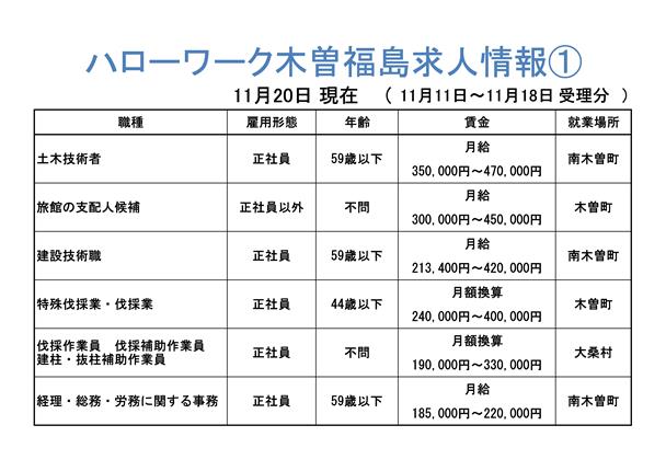 ハローワーク木曽福島からの求人情報をお知らせします。