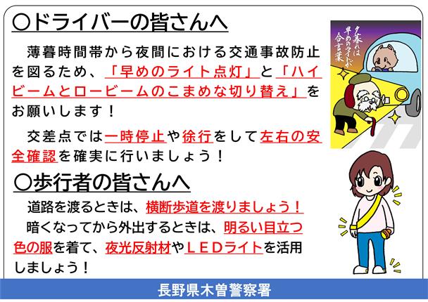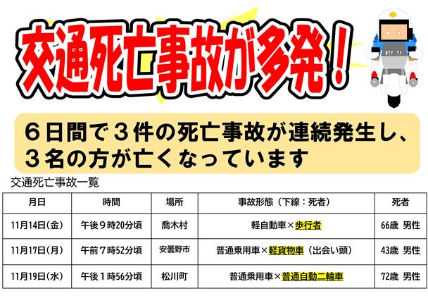 木曽警察署から交通死亡事故多発におけるお知らせです。