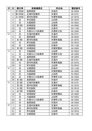 2026年1月~6月までの1次救急当番医についてお知らせします。