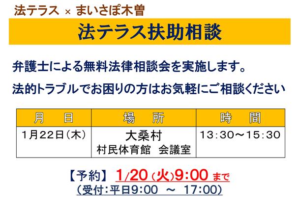 まいさぽ木曽より、無料法律相談会開催のお知らせです。