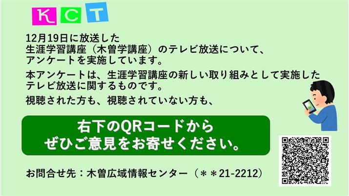 12月19日に放送した、生涯学習講座、木曽学講座のテレビ放送について、
