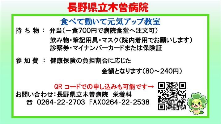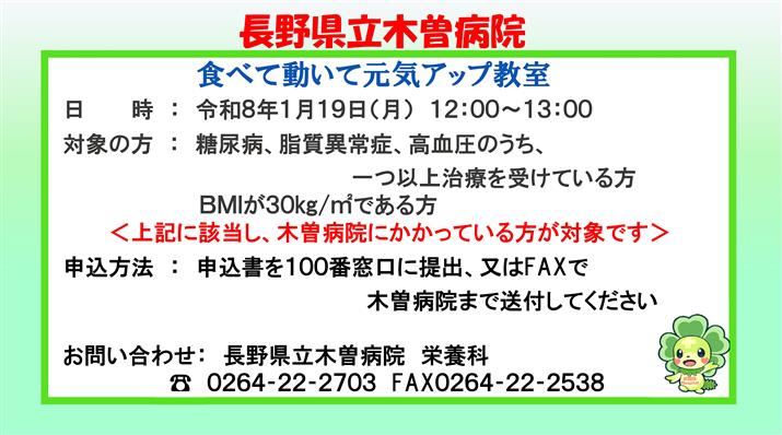 木曽病院から「食べて動いて元気アップ教室」のお知らせ