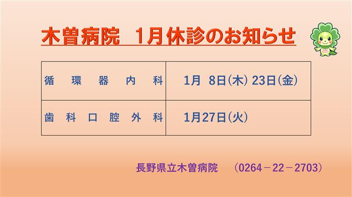 木曽病院からのお知らせ(1月の休診情報)