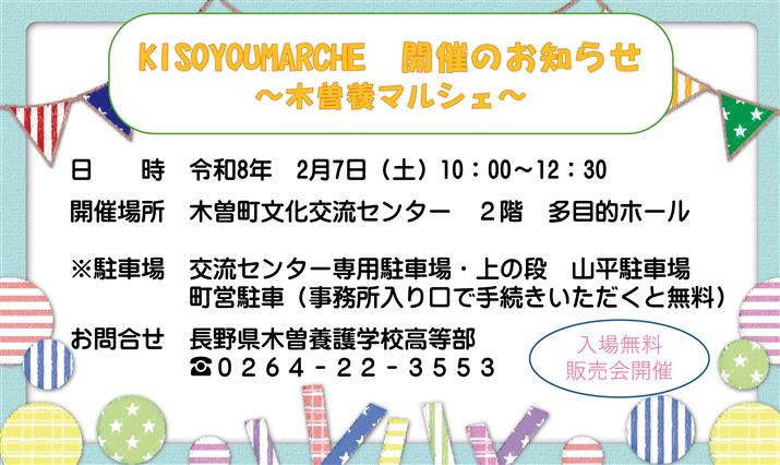 長野県木曽養護学校高等部から、KISOYOUMARCHE~木曽養マルシェ~開催のお知らせです。