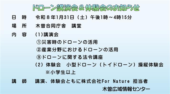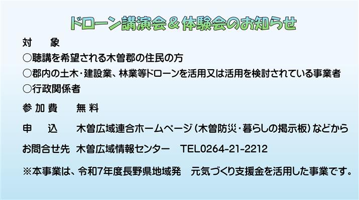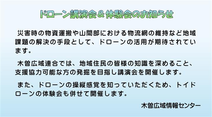 木曽広域連合からドローン講演会&体験会のお知らせ