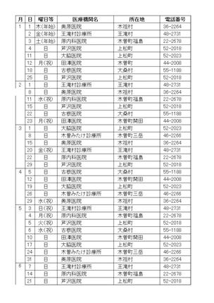 2026年1月~6月までの1次救急当番医についてお知らせします。