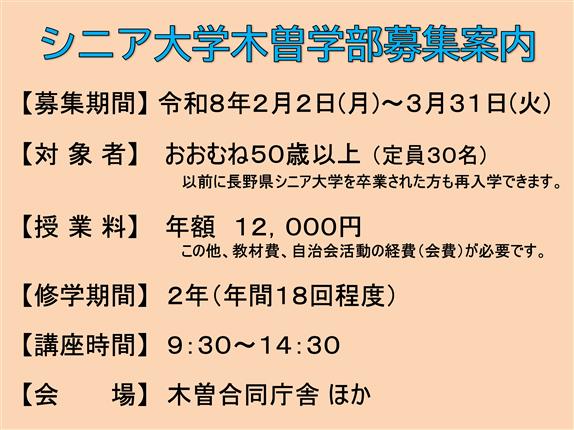 令和8年度シニア大学木曽学部学生募集