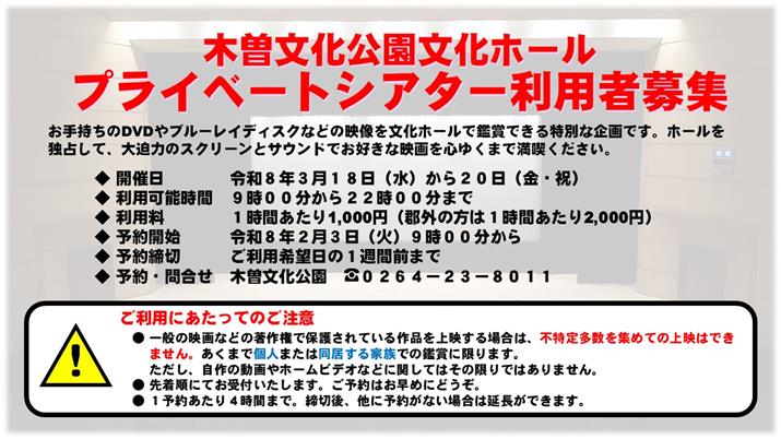 『木曽文化公園文化ホール プライベートシアター』利用者募集