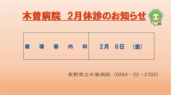 木曽病院からのお知らせ(2月の休診情報)