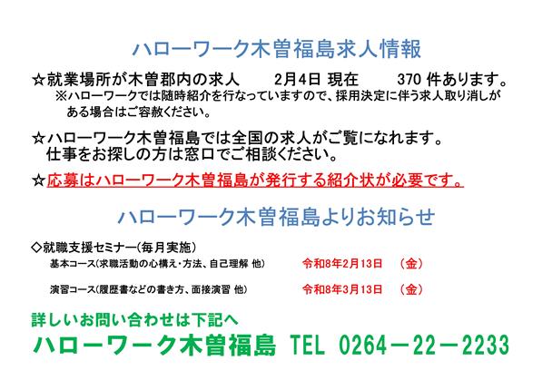 ハローワーク木曽福島からの求人情報をお知らせします。