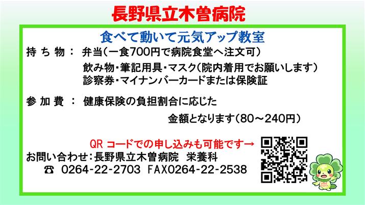 木曽病院から「食べて動いて元気アップ教室」のお知らせ