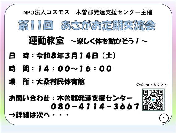 NPO法人コスモス・木曽郡発達支援センターより、「あさがお定期交流会」開催のお知らせです。