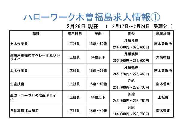 ハローワーク木曽福島からの求人情報をお知らせします。