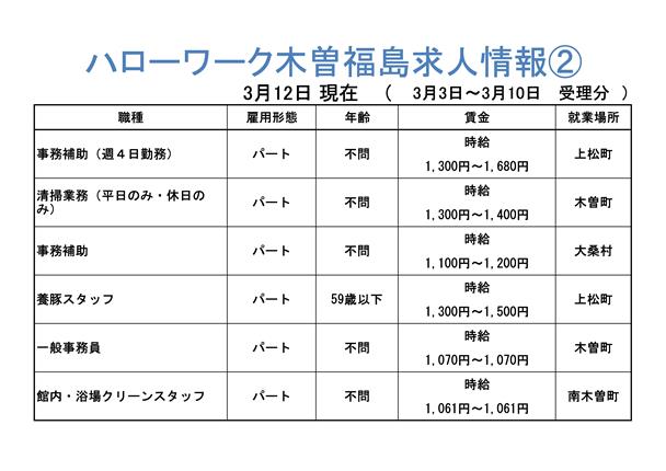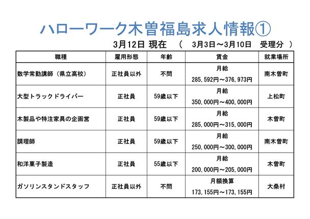 ハローワーク木曽福島からの求人情報をお知らせします。