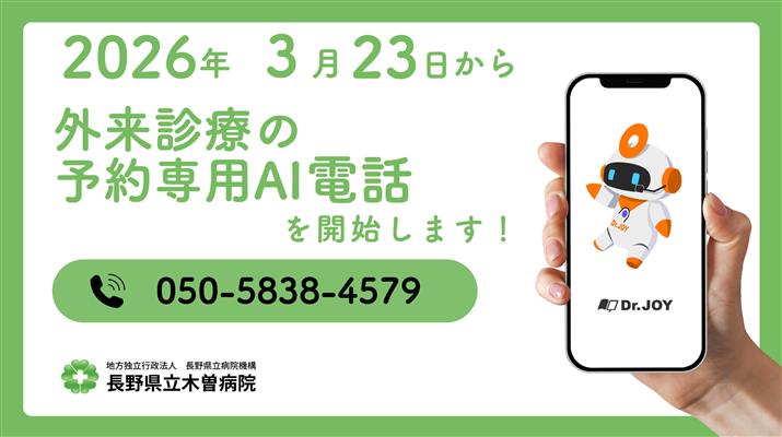 木曽病院から、3月23日より「AI電話による外来診察予約の受付」開始についてお知らせします。