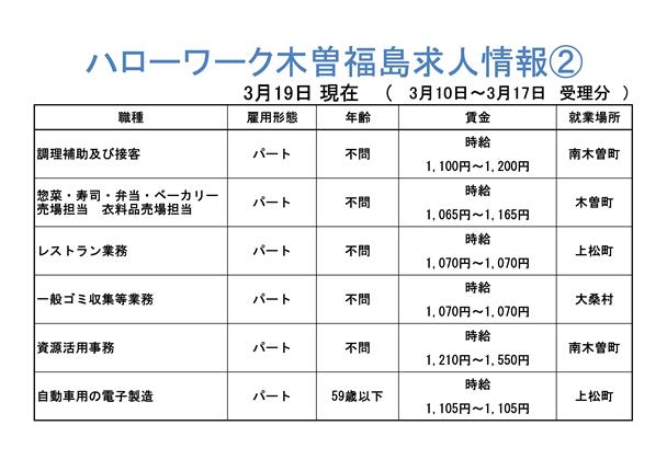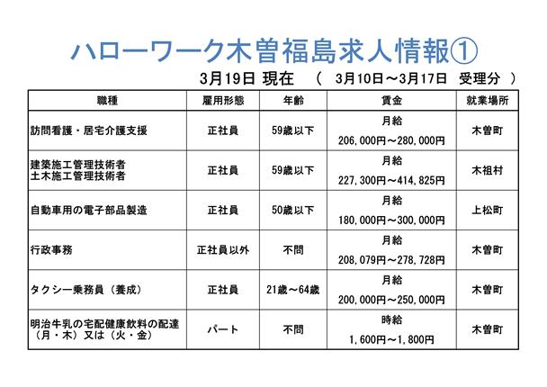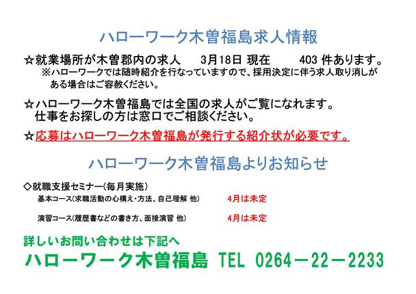 ハローワーク木曽福島からの求人情報をお知らせします。