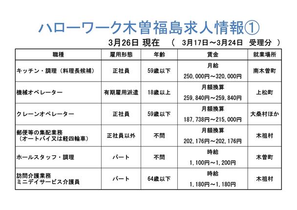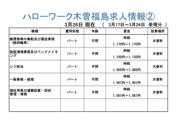 ハローワーク木曽福島からの求人情報をお知らせします。
