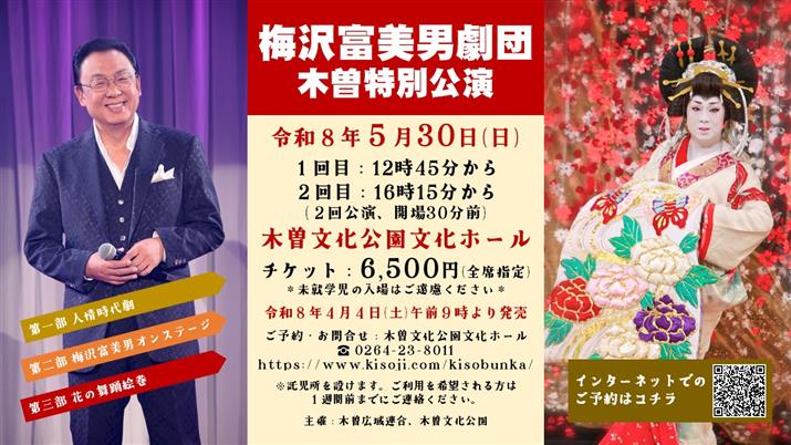 ◆5月30日(土)1回目12:45~、2回目16:15~『梅澤富美男 木曽特別公演』