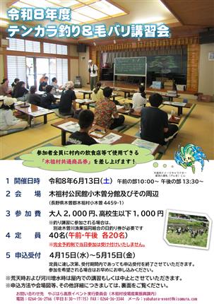 やぶはら高原イベント実行委員会からテンカラ釣り&毛バリ講習会参加者募集についてお知らせします。