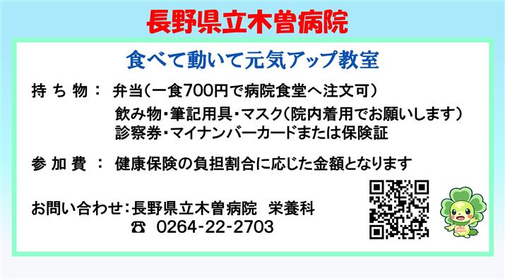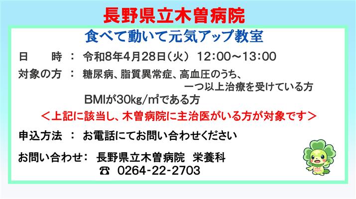 木曽病院から「食べて動いて元気アップ教室」のお知らせ