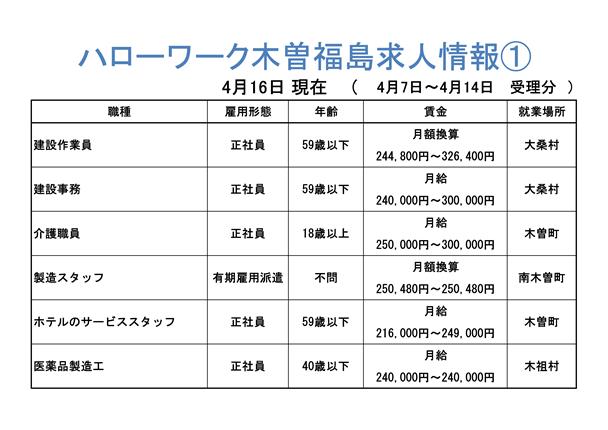 ハローワーク木曽福島からの求人情報をお知らせします。