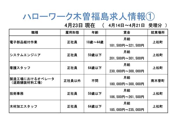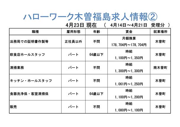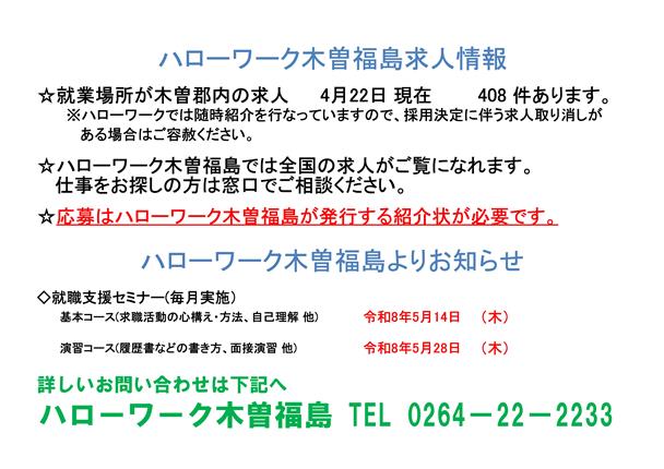 ハローワーク木曽福島からの求人情報をお知らせします。